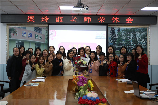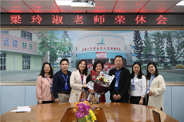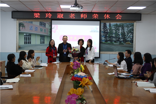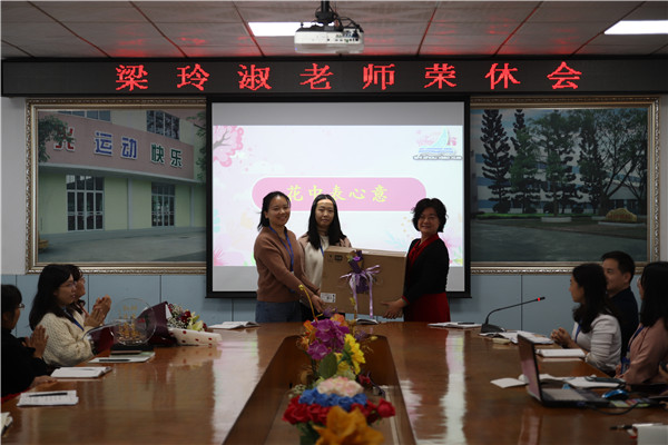 隨后,阮漢潮校長對梁老師無私奉獻的精神表示衷心的感謝,老教師是新教師奮發(fā)向上的動力,是年青教師的學習榜樣,對她的辛勤耕耘,默默付出助力學校的發(fā)展給予了高度贊揚,祝福她在榮休后生活美滿、身體健康,翻開新的人生篇章。