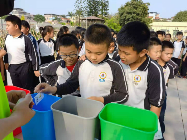 鎮(zhèn)執(zhí)法辦的志愿者帶領(lǐng)大都小學(xué)四年級(jí)學(xué)生在校園內(nèi)進(jìn)行宣傳活動(dòng)。通過(guò)宣傳講解相關(guān)知識(shí)、知識(shí)競(jìng)賽和垃圾分類小游戲等豐富多樣的形式,讓學(xué)生掌握垃圾分類知識(shí),增強(qiáng)了垃圾分類教育的靈活性、趣味性和創(chuàng)造性。