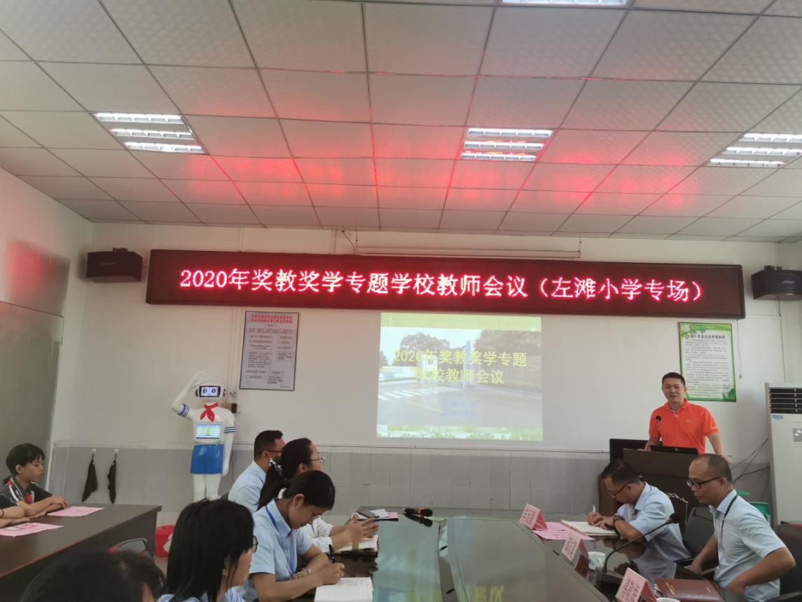 為學(xué)習(xí)貫徹龍江鎮(zhèn)2020年度獎(jiǎng)教獎(jiǎng)學(xué)大會精神,乘著尊師重教的和風(fēng),9月8日下午,龍江左灘小學(xué)召開2020年獎(jiǎng)教獎(jiǎng)學(xué)專題學(xué)校教師會議,龍江鎮(zhèn)委傅敬海委員、鎮(zhèn)教育局代表以及左灘小學(xué)全體教師出席本次會議。