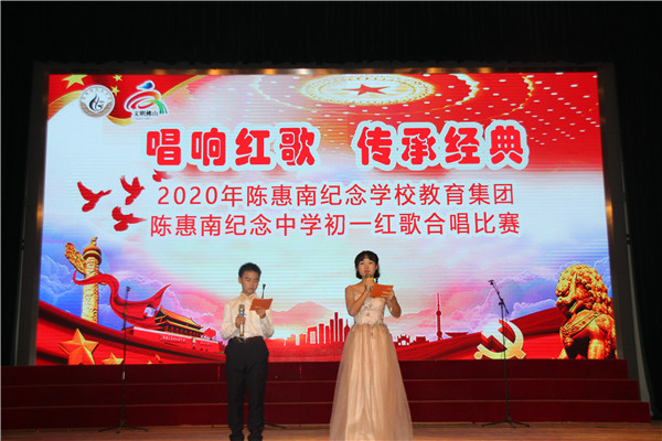 9月24日下午,陳惠南紀(jì)念中學(xué)初一級(jí)紅歌合唱比賽在體育館內(nèi)隆重舉行。來(lái)自初一11班的黃文柳、宋海藍(lán)兩位同學(xué)擔(dān)任主持人。