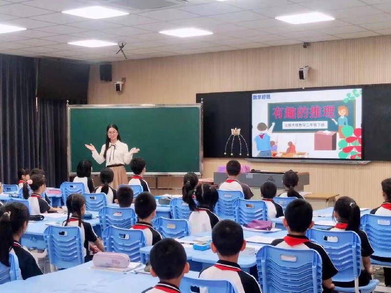 4月2日上午,黃威威老師為順德區(qū)龍江葉霖佳小學(xué)三年級的同學(xué)們上了北師大版《有趣的推理》一課。課前,黃老師用幽默的語言與學(xué)生互動,拉近了彼此距離,為正式上課做好鋪墊。伴隨上課鈴響,師生迅速進(jìn)入上課狀態(tài)。課中,孩子們先通過“猜禮物在哪”初步感知推理;接著在老師引領(lǐng)下,親歷“在哪個興趣小組”和“航模放在哪”兩個活動,學(xué)習(xí)到如何讀懂信息,抓住關(guān)鍵信息進(jìn)行推理,同時學(xué)會用表格法簡潔地表示推理過程和結(jié)果;最后孩子們還運(yùn)用學(xué)到的知識安排好“任課表”。這節(jié)課結(jié)構(gòu)嚴(yán)謹(jǐn),教學(xué)方法靈活多變,教學(xué)語言豐富,老師關(guān)注學(xué)情,能有效地利用學(xué)生學(xué)習(xí)資源,引領(lǐng)學(xué)生思考,獲得知識與能力,發(fā)展了數(shù)學(xué)思維。