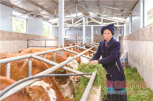 發(fā)展特色農(nóng)業(yè),把當?shù)氐纳鷳B(tài)優(yōu)勢轉(zhuǎn)化為經(jīng)濟驅(qū)動力,這是順德“造血式”幫扶的典型舉措。圖為金陽縣依達鄉(xiāng)瓦伍村種草養(yǎng)畜產(chǎn)業(yè)園,牧民正在喂養(yǎng)牛群。