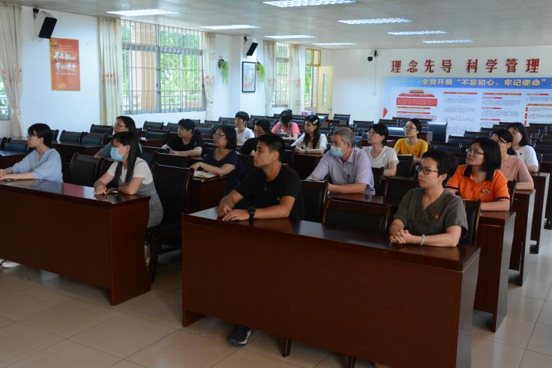 黨員教師們佩戴黨徽,在學(xué)校黨支部的安排下,集中學(xué)校會(huì)議室統(tǒng)一收看直播活動(dòng)。