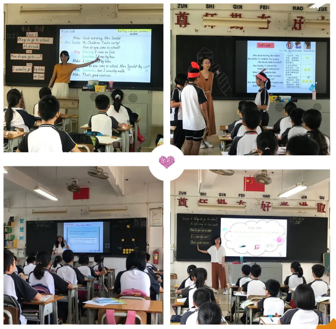 90后的老師同課異構(gòu)的內(nèi)容是PEP人教版六年級上冊Unit 2 Ways to go to school A Let’s try & Let’s talk對話課,各個老師用流利的口語拉開帷幕,首先利用音樂導入課程,引導學生觀察圖片,猜測人物活動,引出難點單詞和重點句型。教學活動的設(shè)計豐富多彩,訓練方式多樣,有全班活動、師生互動、小組活動、雙人活動、個人展示等,在活動中突破難點,在活動中發(fā)展能力。
