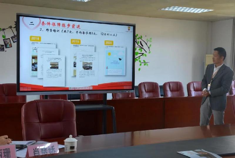 焦柏強(qiáng)校長(zhǎng)作心理健康教育特色學(xué)校建設(shè)工作自評(píng)報(bào)告,并接受專家組提問(wèn)。
