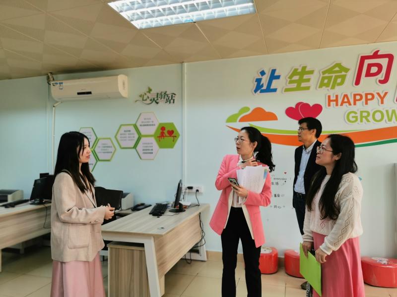 評(píng)審組實(shí)地考察“星級(jí)”心理輔導(dǎo)室建設(shè)情況。