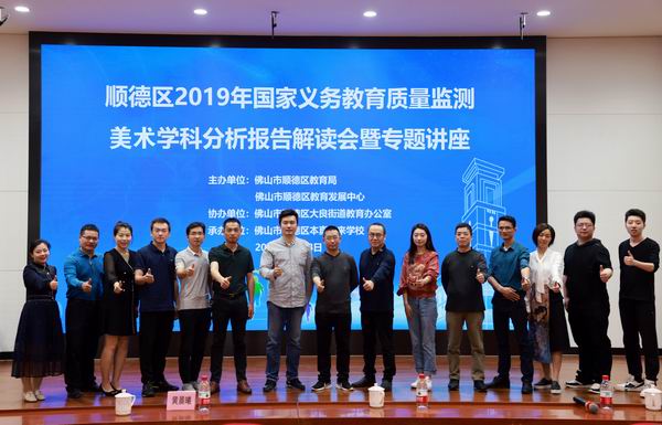 為進一步做好國家義務教育質(zhì)量監(jiān)測結(jié)果解讀工作,充分認識監(jiān)測工作的重要意義,引導美術(shù)教師樹立正確的藝術(shù)教育質(zhì)量觀,促進學生綜合素質(zhì)的提升和身心的健康發(fā)展,2021年3月18日上午,由順德區(qū)教育局主辦,區(qū)教育發(fā)展中心協(xié)辦的順德區(qū)2019年國家義務教學質(zhì)量監(jiān)測美術(shù)學科分析報告解讀會暨專題講座在順德區(qū)本真未來學校報告廳順利舉行。佛山市教育局教研室美術(shù)教研員陳日新老師,順德區(qū)教育發(fā)展中心黃晨曦副主任,教育質(zhì)量監(jiān)測室徐安平副主任、詹火濫老師,教育教學研究室美術(shù)教研員王育群老師,各鎮(zhèn)街美育專干、美術(shù)教研組長出席此次會議,會議由王育群老師主持。全區(qū)200多位中小美術(shù)骨干教師分別在十個鎮(zhèn)街的分會場,以觀看網(wǎng)絡直播的形式參加了此次活動。