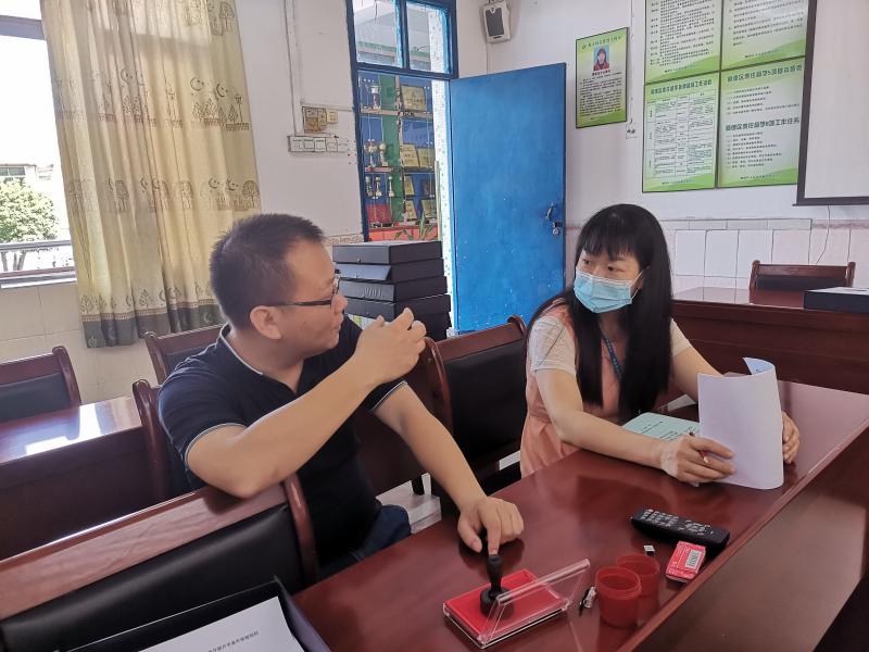 周紅玉督學(xué)來到蘇溪小學(xué),楊非副校長、梁兆玲主任、朱宏輝主任、胡蘊玲主任陪同檢查。周督學(xué)巡查了校門口、保安室、學(xué)校保健室、健康觀察室等校內(nèi)重要場所,并查看校門口外來訪客信息登記表、師生測溫記錄、場室消毒記錄、健康教育記錄等各項臺賬資料。
