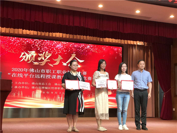 9月25日,主辦單位在佛山市工人文化宮舉辦了隆重的頒獎(jiǎng)儀式,授予吳勁茵老師“佛山市技術(shù)能手”稱號(hào),授予吳勁茵、黃燕娜和馮坤老師“佛山市技能競賽技術(shù)能手”稱號(hào)。
