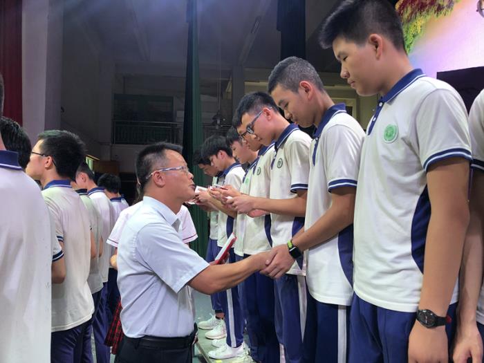 接著, 冉思柱老師代表全體九年級老師在離別之際送上了真誠的祝福。他飽含深情地回憶起跟同學(xué)們在一起的美好時光,并希望大家:讓育賢精神心中永存,用一顆真誠的心向世界播撒溫暖和陽光,堅強(qiáng)勇敢,坦然無愧地看待自己,珍愛平凡而充實(shí)的人生!不管走到哪里,都要與好書為友,與摯友相伴,無愧于自己、無愧于生活、無愧于這個激情四射的時代!