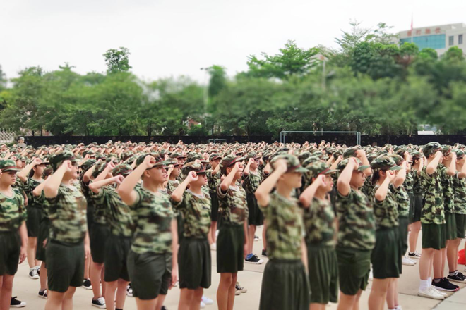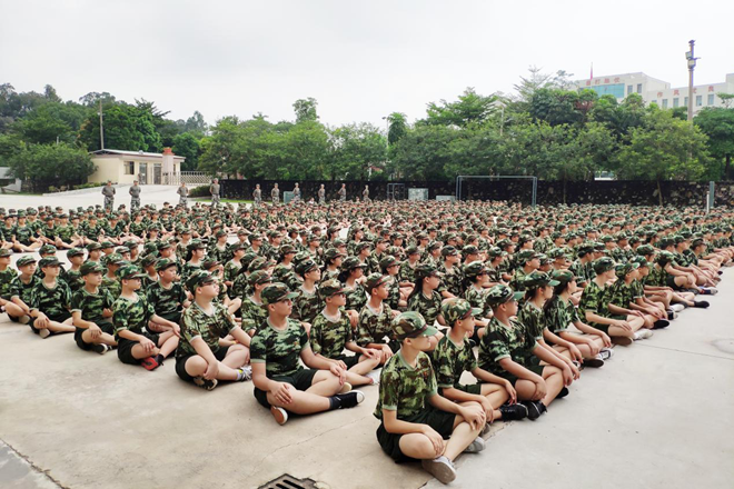上午11:00,在雄渾激昂的國歌聲中,江義中學(xué)700多名新生在佛山青少年軍校舉行了開營儀式。