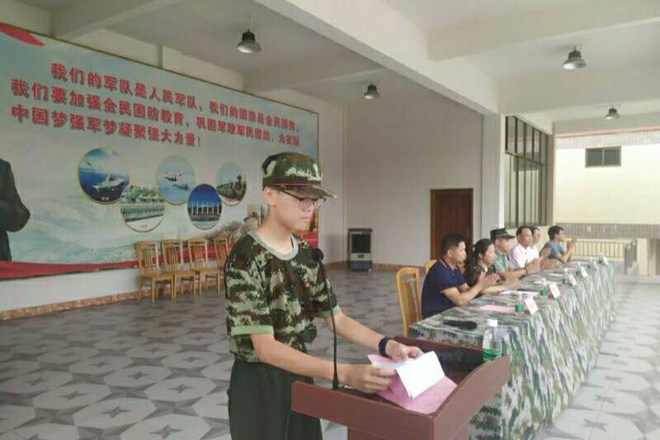 接著,佛山市青少年軍校李志強校長在開營儀式上講話。他希望江義中學(xué)全體學(xué)員能夠珍惜此次鍛煉機會,學(xué)習(xí)軍人品德,將吃苦耐勞的精神、堅強的意志運用到生活中去。樹立良好的衛(wèi)生習(xí)慣,懂得文明禮儀,增強國防意識、團隊意識、紀律意識和安全意識。