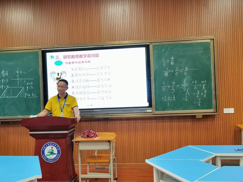 最后,新球中學(xué)何興球校長(zhǎng)在總結(jié)中肯定數(shù)學(xué)科組過(guò)去所取得的成績(jī),也表示未來(lái)可期,對(duì)于現(xiàn)在分層次教學(xué),針對(duì)各個(gè)層次如何上好數(shù)學(xué)課,如何利用現(xiàn)在的小組合作模式,均提出了很好的建議,也特別提到鄧?yán)蠋熕v的“注重解決自身問(wèn)題”,希望老師們都爭(zhēng)做一個(gè)好老師。