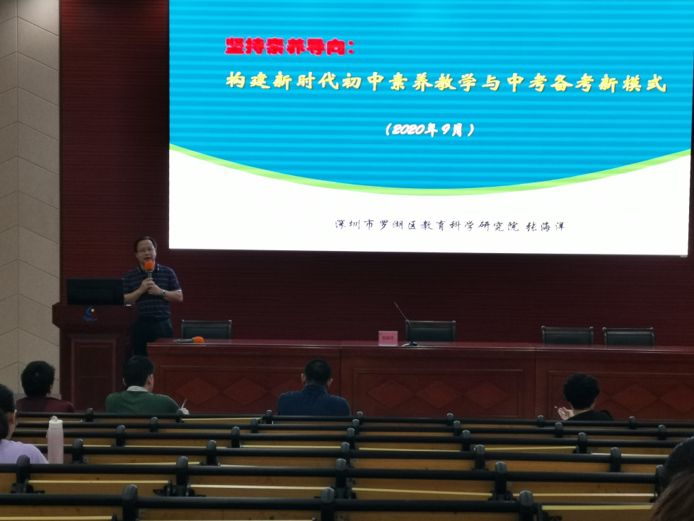 2020年9月29日,我校特邀深圳市羅湖區(qū)教育科學研究院張海洋主任開展題為《堅持素養(yǎng)導向:構(gòu)建新時代初中素養(yǎng)教學與中考備考新模式》的講座,我校全體教師參加了這次培訓。