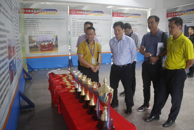 聽完匯報(bào)后,調(diào)研組一行參觀了學(xué)校跳繩隊(duì)成績展示廳,對我校跳繩隊(duì)所取得的成績贊不絕口。隨后又到體育館現(xiàn)場觀摩了跳繩隊(duì)的訓(xùn)練和表演,領(lǐng)導(dǎo)們對跳繩隊(duì)精彩的、冠絕世界的表演紛紛豎起了大拇指。陳健生處長希望跳繩隊(duì)的全體教練員和運(yùn)動(dòng)員:第一,要全力以赴,科學(xué)訓(xùn)練,刻苦訓(xùn)練;第二,要注意保護(hù)好自己,盡量減少傷??;第三,要奮勇拼搏,百尺竿頭更進(jìn)一步,努力為學(xué)校爭榮、為廣東爭光。他還與全體教練員和運(yùn)動(dòng)員合影留念。