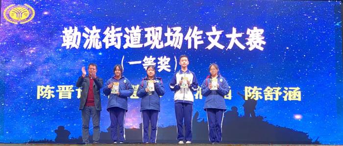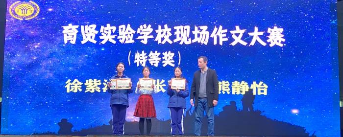張紅軍老師為學(xué)校現(xiàn)場作文大賽特等獎同學(xué)頒獎