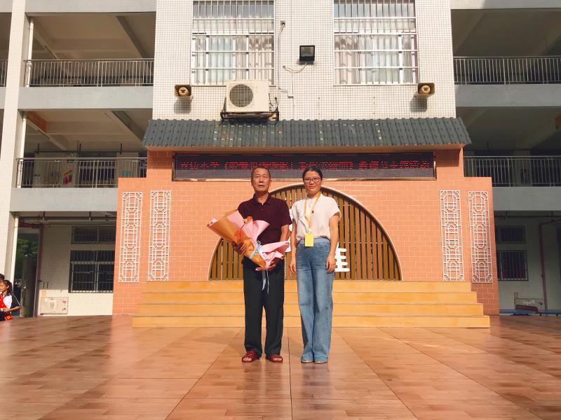 之后,活動迎來“給辛勤的園丁”獻(xiàn)花環(huán)節(jié)。首先,是彭海云校長為容邊小學(xué)退休的吳校長獻(xiàn)上美麗的鮮花,感謝他半輩子用心做教育,做學(xué)生的引路人。接著,容邊小學(xué)容雅禮儀隊隊員為各科組老師們依次獻(xiàn)花,并由彭海云校長為全體老師頒發(fā)教師節(jié)紀(jì)念賀卡。最后,彭海云校長為“三十年教齡”的老師馮城發(fā)副校長和李綺雯副校長獻(xiàn)上獻(xiàn)花,感謝他們?yōu)榻逃聵I(yè)奮斗了三十年,付出了自己的青春,辛勞耕耘。