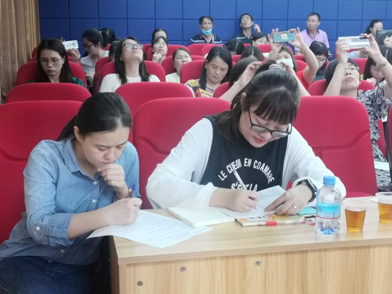 第二部分是評(píng)課環(huán)節(jié)。首先詹睿老師和肖婉瓊老師分享了自己的教學(xué)設(shè)想,容山小學(xué)的吳姿霖和宋淑婷老師也分別交流了自己的學(xué)習(xí)心得。隨后楓冼小學(xué)張雪映老師、楓冼小學(xué)王海蘭老師、新城鎮(zhèn)中心小學(xué)南校區(qū)梁彩燕等幾位老師紛紛表示自己在這兩節(jié)課中學(xué)習(xí)到了很多,如引導(dǎo)孩子表達(dá)方面,不是沒有教,而是沒有堅(jiān)持下去;看到了導(dǎo)讀課的多樣形式,受益匪淺;同時(shí)在思考后也提出了疑問:如高年級(jí)還能用低年級(jí)讀封面這樣的策略嗎?推進(jìn)課還有什么形式?分享課圍繞“課本劇、手抄報(bào)”等形式應(yīng)該怎么選?詹睿老師針對(duì)這些問題一一解答,和大家進(jìn)行了深入的交流。