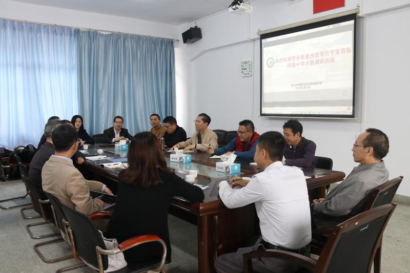 課后,專家調(diào)研組一行參觀了校園,了解了學(xué)校建設(shè)及辦學(xué)情況,聽(tīng)取了麥順棠校長(zhǎng)關(guān)于學(xué)校教育教研成果、學(xué)校規(guī)劃的匯報(bào)。麥順棠校長(zhǎng)提到,學(xué)??傮w統(tǒng)籌教學(xué)工作,重點(diǎn)推進(jìn)幾項(xiàng)工作:一是四基中學(xué)德育團(tuán)隊(duì)針對(duì)學(xué)生作業(yè)、課堂評(píng)價(jià)等方面制定相關(guān)制度,規(guī)范學(xué)生行為規(guī)范;二是深入發(fā)展校園文化,開(kāi)設(shè)創(chuàng)客、文學(xué)、足球等社團(tuán),積極打造“純真”教育;三是構(gòu)建高素質(zhì)、高質(zhì)量師資團(tuán)隊(duì),教師定制個(gè)人職業(yè)規(guī)劃,提升青年教師的業(yè)務(wù)成長(zhǎng)。
